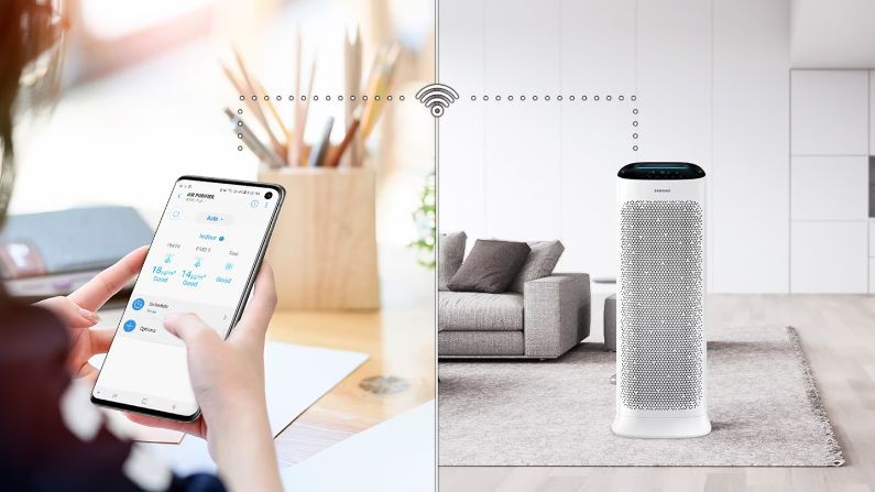 Figyelj a levegőd minőségére, és ellenőrizd a szennyezettség szintjét bármikor és bárhol. A SmartThings alkalmazás* segítségével távolról is irányíthatod a legtisztítót. Egy egyszerű érintéssel vagy a hangoddal** be- és kikapcsolhatod, ellenőrizheted a levegő minőségét, irányíthatod a funkciókat és figyelheted a szűrő állapotát.