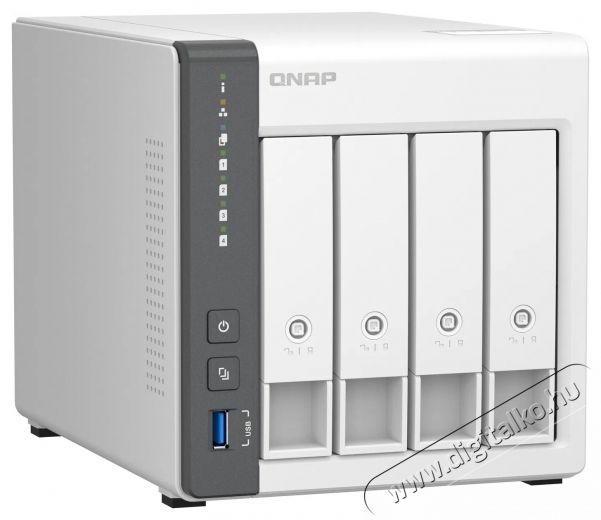 A QNAP QNAP TS-433-4G intelligens adattároló egy nagyszerű funkciókkal és átlagon felüli teljesítménnyel rendelkező rendszer megfizethető áron. Az ARM Cortex-A55 processzor a 4 GB RAM-mal és a 4 GB flash memóriával kombinálva nagy megbízhatóságot és stabilitást biztosít a hosszú távú működéshez. A tárhely a négy 2,5"-es vagy 3,5"-es meghajtó segítségével könnyen méretezhető és bővíthető a variálhatóságnak köszönhetően. A rendszer emellett egy gyors LAN csatlakozóval van felszerelve, amely támogatja a 2,5GbE átviteli szabványt. Az eredmény egy egyszerűen használható és költséghatékony adattároló lesz, amely alkalmas adatmentésre, fájlszinkronizálásra és -megosztásra, távoli hozzáférésre és multimédiás alkalmazások számára. Nagy vonzerő az integrált NPU proesszor (Neural network Processing Unit), amely növeli a QNAP AI Core teljesítményét a nagy sebességű arc- és tárgyfelismeréshez a mesterséges intelligencia segítségével.