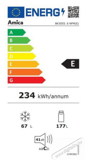 | Hűtőszekrény éves energiafogyasztása | 234,33 kWh/annum |