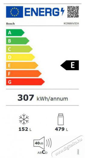 | Éves energiafogyasztás (kWh/a): | 307 kWh |