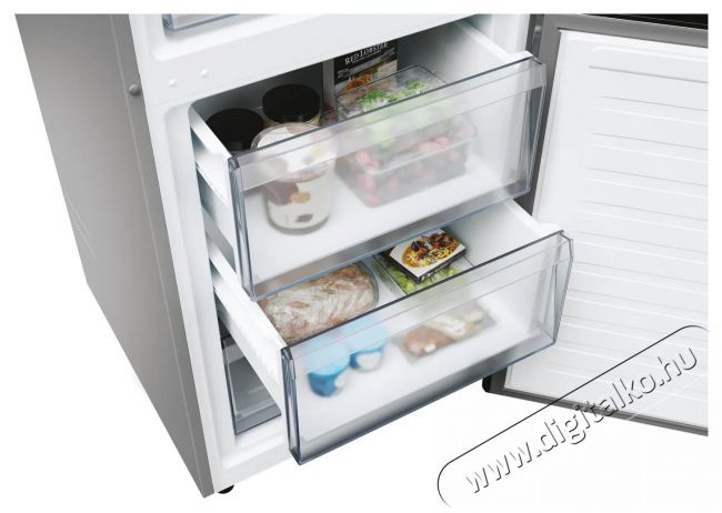 Ez a 60 cm-es kombi hűtőszekrény 409 literes kapacitással rendelkezik, és akár 21 élelmiszeres zacskó tárolására is alkalmas.* A nagy fagyasztófiókoknak köszönhetően extra hely áll rendelkezésre a terjedelmes tárgyak számára. *Az összehasonlítás célja, hogy azonnal érthető legyen a termék tényleges űrtartalma, feltételezve, hogy a bevásárlószatyrok telítettségükig meg vannak töltve, és tartalmuk bármilyen helyen tárolható. a termék területe. A termék túltöltése nem javasolt, a terméket a használati utasításnak megfelelően kell használni. A zacskók kapacitása az Egyesült Királyság átlagos közepes méretű bevásárlótáska térfogata alapján (forrás: Environment Agency of UK Government, 2011). A hűtőszekrény űrtartalma normál használati beállítással számolva, minden polccal és tartozékkal a helyén.