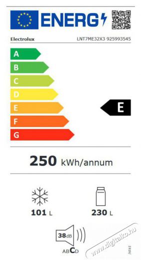 ELECTROLUX LNT7ME32X3A minőségi Kombinált ELECTROLUX LNT7ME32X3 hűtőszekrény remek választás a konyhádba, a finomságok tárolására. 229,6 l a hűtő belső térfogata, elég kényelmes egy átlagos, gyermekes család számára. E energiaosztályú készülékek táborát erősíti. A lent található a fagyasztó, amely rekeszeinek a száma: 3. Hatalmas 100,6 l a fagyasztó űrtartalma. 24 óra alatt 8 kg mennyiségű élelmiszert képes lefagyasztani. A fantasztikus ELECTROLUX hűtőszekrény méretei: 186 × 59,5 × 65 cm (ma x szé x mé). Tömeg: 63,5 kg.