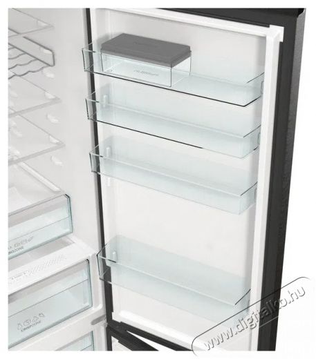 A klassz GORENJE NRB620C81BX4WFE Hűtőszekrény Total No Frost rendszerrel büszkélkedik, amely fellép a jegesedés ellen, ezáltal csökkenhet az energiafelhasználást. Ha új élelmiszereket kell, hogy beletegyél, a hűtőszekrény fagyasztóval intenzíven csökkenteni kezdi a hőmérsékletet, és kimondottan gyorsan hűti le a benne lévő élelmiszereket. A Zero zone rekeszben lévő hőmérséklet épp, hogy csak 0 fok fölött van. Optimális körülményeket biztosít annak érdekében, hogy az ételek aromája és színe hosszabb ideig megmaradjon, ennek köszönhetően minden a fogyasztás pillanatáig ízletes marad. Belül kellően erős és gazdaságos LED-világítással rendelkezik. A beállítások és működés ellenőrzése nagymértékben egyszerűsödik a jól áttekinthető kijelzőnek köszönhetően. Ha a hűtőajtó nyitva marad, a készülék felhívja erre a figyelmedet. Multi-Air Flow funkcióval rendelkezik a hideg levegő belső térben való egyenletes eloszlatása érdekében. A Metal Cooling garantálja a hatékony hűtést. A hátsó, fémfelületeket használja fel az élelmiszerek hűtésére az ajtó kinyitása után, így hatékonyabb az energiafelhasználás.