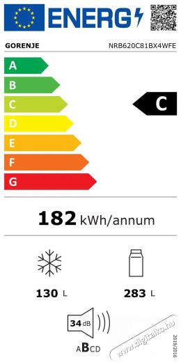 - Éves fogyasztás: 181,59 kWh/annum