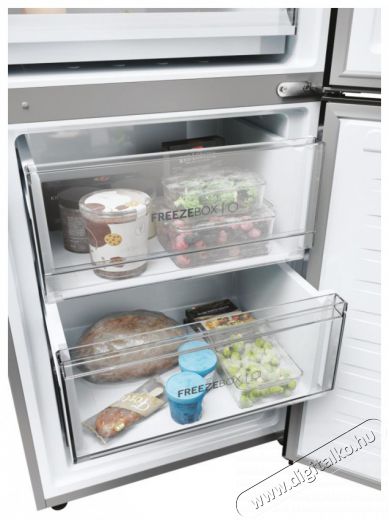 A Haier D osztályú hűtőszekrény energiamegtakarítást, a teljesítmény hatékonyságának növelését és a környezet tiszteletben tartását biztosít, -36%-kal alacsonyabb fogyasztással az F osztályhoz képest.