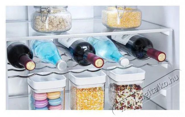- A hűtőszekrény rozsdamentes acél palacktartót is kínál