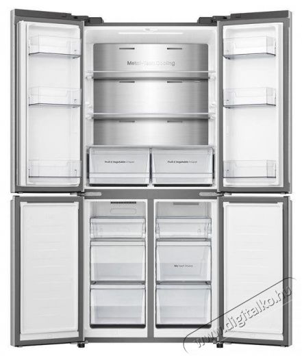 A hideg levegő egyenletes eloszlása A Hisense RQ5P470SAIE hűtőszekrény minden rekesze mindig azonos hőmérsékletű, így optimális tárolási körülményeket biztosít minden típusú élelmiszer számára. A hideg levegőt az intelligens Multi Air Flow rendszer oszlatja szét.