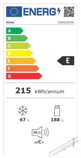 MORA CMDN 3054 WA minőségi Kombinált MORA CMDN 3054 W hűtőszekrény bizonyára jól illik majd a konyhádba. A hűtőszekrény egy hűtőkörrel büszkélkedhet. 188 l a hűtő belső űrtartalma, így ideális kisebb létszámú családok számára. E az energiaosztály-besorolása. A mindennapi alapanyagok és élelmiszerek tárolására 4 darab polc áll benne a rendelkezésedre. A lent elhelyezett fagyasztó rekeszeinek a száma: 3. 67 l a fagyasztórész űrtartalma. Egy nap alatt 4 kg élelmiszer fagyasztható le a segítségével. No Frost rendszerrel készült, így nem fog kelleni leolvasztani. A profi MORA hűtőszekrény méretei: 179,5 × 55 × 55,2 cm (ma x szé x mé). Tömeg: 55 kg.