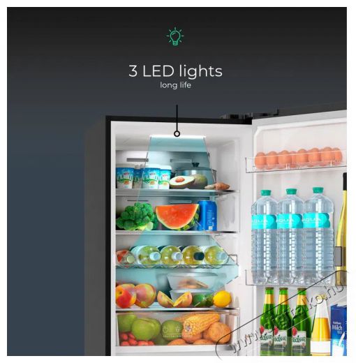 LED-világítás és riasztás, amely nem hagyja, hogy elsétálj a nyitott hűtőszekrény elől Természetesen a SIGURO BF-A241Y Premium kombinált hűtőszekrény gyermekzárral is fel van szerelve. Ha 120 másodpercnél hosszabb ideig nyitva hagyod az ajtót, hangjelzés hallatszik, amely rendszeres időközönként ismétlődik, amíg be nem zárod. Az energiatakarékos belső LED-világítás (1× felül és 2× oldalt) tökéletes áttekintést biztosít, és megkönnyíti a tárolt élelmiszerek megtalálását. Jégkockaformát és tojástartót is tartalmaz.
