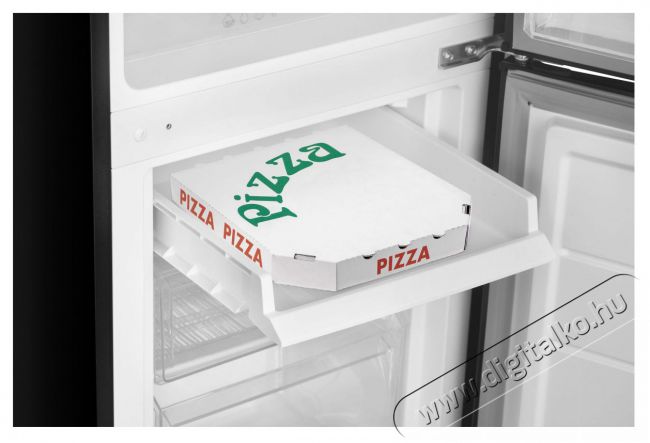 A Siguro BF-J140Y Arctic hűtőszekrény 173 literes hasznos térfogattal rendelkezik, amelyből 52 liter a készülék alján található fagyasztónak jut. A fagyasztórekesz két kihúzható fiókkal van felszerelve, amelyek átlátszóak és tökéletes áttekinthetőséget biztosítanak. Mind a fagyasztó, mind a hűtőszekrény ajtaja tágasra nyitható, így a fiókok teljesen kihúzhatók, így biztosítva a tárolt élelmiszerekhez való könnyű hozzáférést. A készülékhez tartozik egy Pizza Slide tartozék is - amely egy praktikus fiók a pizzásdoboz számára.