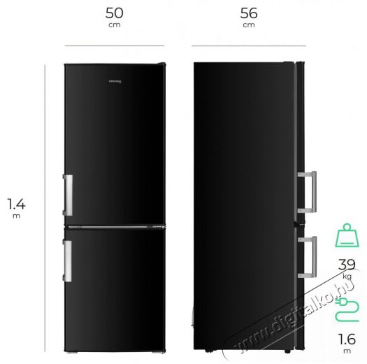 - Hőmérséklet-tartomány: 0-9 °C (hűtőszekrény), -22-14 °C (fagyasztó)
