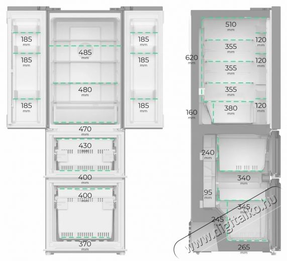 Ez a modern francia hűtőszekrény 320 literes össztérfogatával ötvözi az időtlen megjelenést és a praktikus elrendezést. A felső részt két széles ajtó alkotja, 191 literes hűtőtérrel, míg az alsó kihúzható fiókok további 129 litert kínálnak fagyasztott élelmiszerek számára. A No Frost rendszernek és a Multi-AirFlow egyenletes légáramlásnak köszönhetően nem képződik jég, és az élelmiszerek hosszabb ideig frissek maradnak. ASiguro Lunora E252Y hűtőszekrény vezérlését érintőképernyős LED panel biztosítja, amely olyan funkciókat tesz elérhetővé, mint a gyorsfagyasztás, a gyerekzár vagy az energiatakarékos és a nyaralás üzemmód. Az elegáns rozsdamentes kivitel integrált fogantyúkkal, a csendes kompresszor és az E energiaosztály teszik ezt a hűtőszekrényt a modern otthon stílusos és megbízható kiegészítőjévé.
