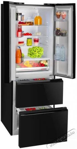 A jól kihasználható AMICA hűtőgép belső elrendezése és méretei A side by side típusú AMICA FY3279.6GDFB készülék kiváló választás a nagycsaládosok számára, és tökéletesen illik a tágas konyhákba. A készülék hűtőrészének űrtartalma 228 l, ez a tér elegendő egy átlagos, többgyermekes családnak. A mindennapi alapanyagok és élelmiszerek tárolására a hozzá tartozó polcok száma 3 polc. A fagyasztótér mérete: 129 l, amely a szabványnál nagyobb térfogat. A fagyasztóban lévő fakkok száma: 2 rekesz. A remek hűtőgép a megfelelő hűtésért felelős hűtőközege a kiváló R600a. A praktikus AMICA hűtőszekrény méretei 180,3 × 65,4 × 71,7 cm (ma x szé x mé). Az amerikai típusú side by side hűtő súlya: 77 kg.