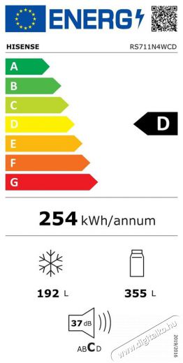 | Hűtőszekrény éves energiafogyasztása | 254 kWh/annum |