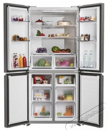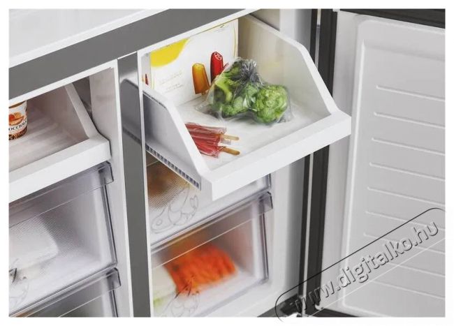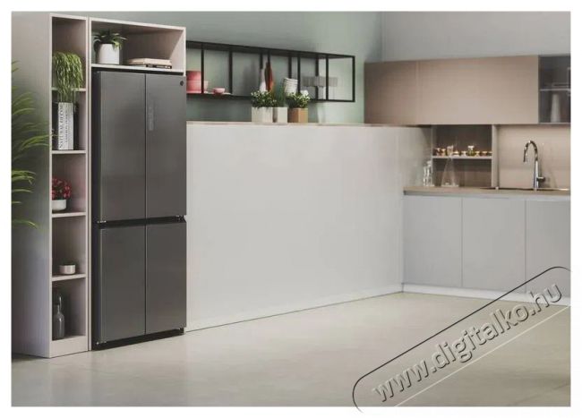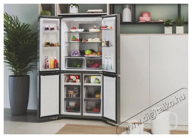 HOOVER HHCR3818ENPLA nagyszerű HOOVER HHCR3818ENPL side by side hűtő bőséges térfogattal büszkélkedhet. Különösen alkalmas tágasabb konyhákhoz, és funkcióival még az igényesebb felhasználók körében is sikeres lesz. Szabadon álló hűtőszekrény, amely nem okoz gondot elhelyezni a konyhában. Az amerikai típusú side by side hűtőszekrény ajtói tipikusan kétfelé nyithatók, amely megfelelő helyet igényel. A hűtőszekrény ajtaja kiemelkedik a síkból, amikor kinyitod, így a fal mellett ki kell hagynod néhány centiméternyi helyet. A következő klímaosztályba került: SN, N, ST és T. Alacsony, B osztályba sorolt zajszinttel büszkélkedhet, így alig bocsát ki zajt.