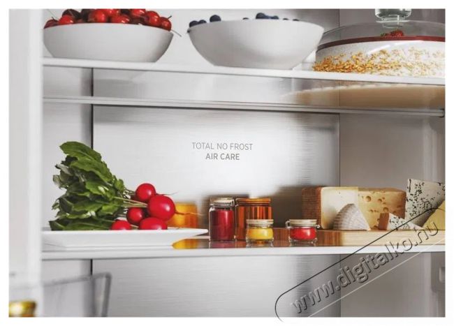 - Rendelkezik a Total NoFrost funkcióval, amely megakadályozza a fagyást