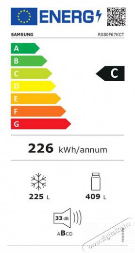 | Hűtőszekrény éves energiafogyasztása | 226 kWh/annum |