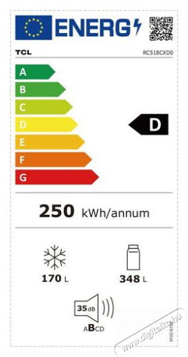 | Hűtőszekrény éves energiafogyasztása | 250 kWh/annum |