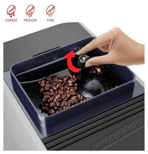 Beépített kávédaráló, Kijelző, Őrölt kávé tartó, Tejadagolás, Víztartály |