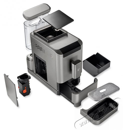 - 1,4 literes víztartály, amely oldalról kivehető, így a kávéfőző a konyhai faliszekrények alá is elhelyezhető