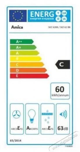Az ismert AMICA páraelszívó C energiaosztályba tartozik. Éves energiafogyasztása: 60 kWh. zsír típusú szűrővel rendelkezik, amely gondoskodik arról, hogy a ventilátor motorja ne érintkezzen a szennyeződésekkel. Minőségi elszívást biztosít, amely mértéke: 280 m³/h. A népszerű AMICA páraelszívó a következő helyre szerelhető fel kis konyhák (20 m²-ig). Az ismert AMICA páraelszívó szélessége 60 cm.