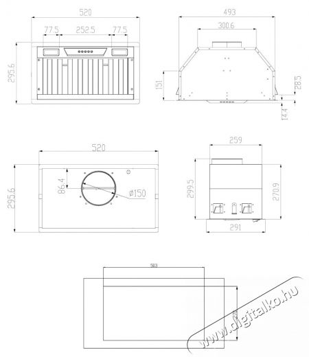 | Hozzátartozó kiegészítők | 1 x Páraelszívó Csökkentés 150 mm-ről 120 mm-re Inox filter Visszacsapó szelep |