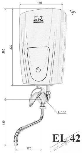 ELIZ EL 42Az ELÍZ elektromos átfolyós vízmelegítő mindenütt használható, ahol nincs központi melegvíz-ellátás. A fűtőtestet nyomás nélküli csatlakoztatásra tervezték egyetlen felhasználási pontra, mosogató vagy konyhai mosogató fölé történő beszereléssel. Szinte bárhol használható - otthon, a nyaralóban, a szociális létesítményekben és sok más helyen. Az ELÍZ EL 42 modell fedett fűtőelemmel rendelkezik, így védve van a vízkőlerakódás hatásaitól.