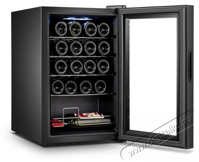 GUZZANTI GZ 20Használd ki nagyszerű ajánlatunkat, és tárold a borokat úgy, mint egy igazi profi a GUZZANTI GZ 20 borhűtő segítségével, amely 20 üveg bor tárolását teszi lehetővé. A készülék A energiaosztályba tartozik, amely igazán környezetbarát. A borhűtő működése a LED-es kijelzőnek köszönhetően nagyon kényelmes és egyértelmű. Belső része praktikus LED-es világítással van felszerelve. A kényelmes tárolás érdekében 4+1 krómozott huzalpolc áll rendelkezésre, amelyeken a palackok nagyszerűen néznek ki. A modell hűtési tartománya 5-18 °C, amely a fehér és vörös bor tökéletes tárolását biztosítja. Továbbá minden bizonnyal elnyeri tetszésed az edzett üvegből készült ajtó is.