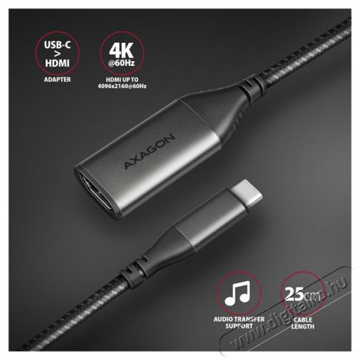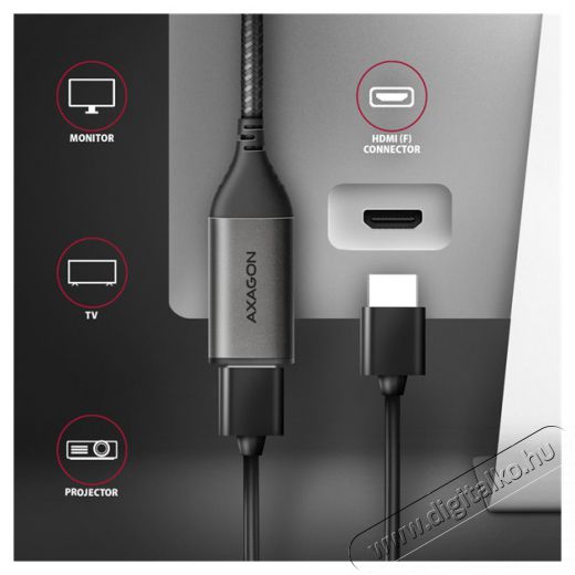 Modern USB-C -> HDMI AXAGON RVC-HI2M aktív adapter, HDMI monitor/TV/kivetítő laptophoz vagy telefonhoz való csatlakoztatásához az USB-C csatlakozón keresztül.