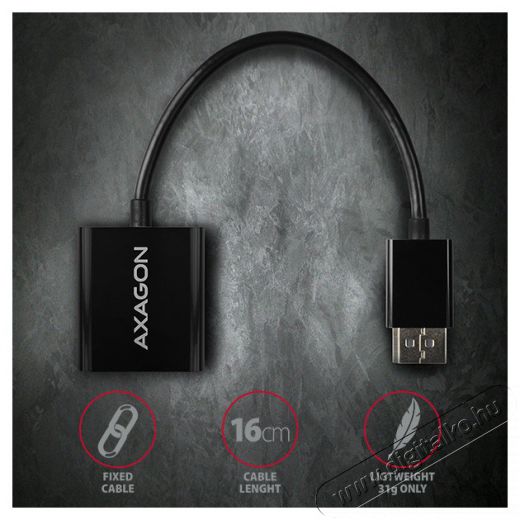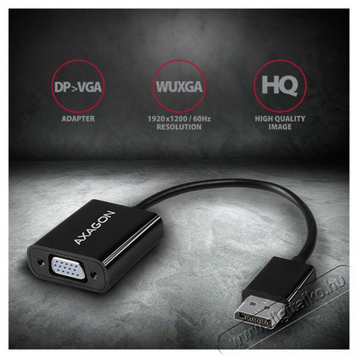DisplayPort -> VGA aktív AXAGON RVD-VGN adapter régebbi VGA monitor/TV/vetítő Display Port kimenetes számítógépre csatlakoztatásához.