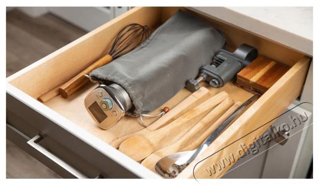 A Sous Vide főző IPX7-es besorolással büszkélkedhet, tehát vízálló - 30 percig bírja a víz alá merülést egy méteres mélységben. A főző használata után kényelmesen elmoshatod folyóvíz alatt, majd hagyd szabadon megszáradni.