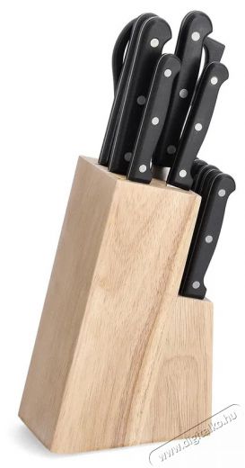 Ebben az esetben mintha neked készült volna a minőségi Zeller késkészlet, amelynek minden konyha alapfelszereltségében ott a helye. A készletben megtalálható kések: szakácskés, gyümölcsvágó kés, kenyérvágó kés, zöldségvágó kés, olló, steak kés és univerzális kés. A szakácskés nagyszerű mindenfajta hozzávaló feldolgozására, a tömör hústól a puha sajtokig. A pékáru szeletelő kés képes idegesítő morzsálódás nélkül felszeletelni a péksüteményeket, de a puha tészta feldarabolásakor is ki lehet használni. Az univerzális kést sokféle konyhai feladat elvégzésére felhasználhatod. A zöldségkés megfelel bármilyen zöldség feldolgozására. Ezeket a pengéket a legtöbb élelmiszerrel való munka közben fel lehet használni, mivel kemény rozsdamentes acélból gyártották őket. A nyél műanyagból készült, aminek köszönhetően a kés alacsonyabb tömeggel rendelkezik. A minőségi konyhai olló fontos szerepet játszik a konyhában, ugyanis könnyebbé teszi a különböző anyagok és csomagolóanyagok vágását. A készlet késtartó állvánnyal is rendelkezik. Ez a kiváló 13 részes Zeller készlet minden konyhába illik, és kellemesebbé teszi neked az élelmiszerek szeletelését.