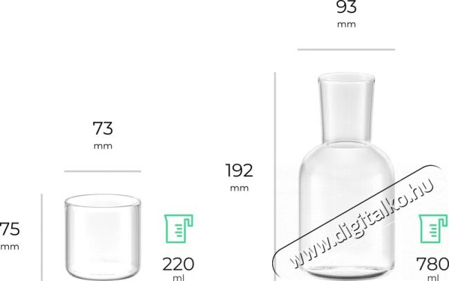 Ideális otthoni vagy irodai használatra A Siguro Crystal Duo szett nemcsak a kézműves munka, hanem a design és az anyag tekintetében is nagyszerű. Ráadásul a pohár kényelmesen kézben tartható, könnyű belőle inni, a dekantáló optimálisan kialakított nyaka pedig lehetővé teszi a víz kényelmes kiöntését. A dekantáló térfogata 780 ml, a poháré 220 ml.