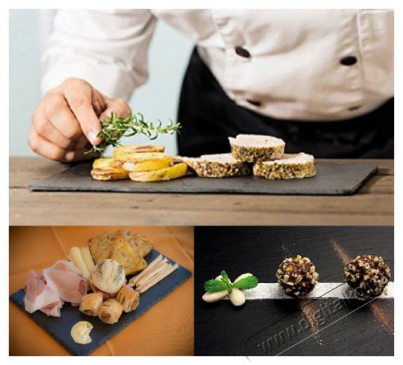 Manapság nagy az igény a természetes anyagokhoz történő visszatérésre. Éppen ezért biztosan nagy népszerűségnek fog örvendeni a téglalap alakú Olly Ardesia pala tábla tálalólap, amely a kiváló minőségű termékeiről nevezetes olasz Tognana cég terméke. Természetes kőből készült - sötétszürke palából. Sokoldalúan használhatod a konyhában különböző ételek tálalásához. Az ételek a sötét háttéren exkluzívan néznek ki, akár kisebb falatkákat, szendvicseket, sushit vagy bármi mást teszel rá. A Tognana pala tálalólap luxus megjelenésű, amely tökéletesen egészíti ki az asztal és a konyha eredeti designját.