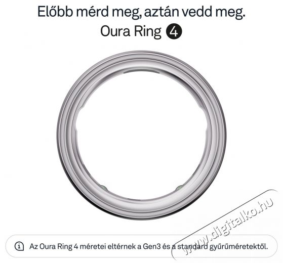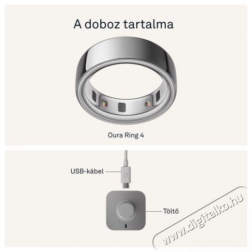 Oura Ring 4 - Elegáns okosgyűrű a folyamatos egészségmegőrzéshezAz Oura Ring 4 okosgyűrű forradalmasítja azt, ahogyan a saját testedhez viszonyulsz. A könnyű titánból készült, apró és elegáns gyűrű belsejében kutatási pontosságú technológia rejtőzik, amely elősegíti a jobb alvást, a hatékonyabb regenerálódást és segít megérteni, mi zajlik valójában a felszín alatt. Olyan kulcsfontosságú területeket figyelhetsz meg vele, mint az alvás, a napi aktivitás és kondíció, az általános felkészültségi szint, a szív egészsége vagy a mindennapos stressz szintje – olyan nagymértékű pontossággal, ami versenyre kel a hagyományos viselhető eszközök által nyújtott lehetőségekkel. Mindezt közvetlenül az ujjadról, ahol a biometrikus adatok a legpontosabbak. Az Oura Ring 4 okosgyűrű kiemelkedő precizitást nyújt a modern szenzoroknak köszönhetően, akár 8 napos akkumulátor-üzemidőt biztosít, 100 méterig vízálló, és több, mint 40 alkalmazással képes együttműködni. Bluetooth Low Energy kapcsolaton keresztül kommunikál, és teljesen kompatibilis Android és iOS eszközökkel is. Támogatja a metrikus és angolszász mértékegységeket, valamint több nyelvet, például az angolt, a németet és a japánt. Az Oura Ring 4 okosgyűrű viselésével minden fontos információ szó szerint karnyújtásnyira van – pontosabban az ujjadon.