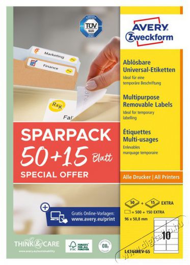 Avery L4744REV-65 96x50,8 mm visszaszedhető univerzális 50+15 lap 650 db-os etikett