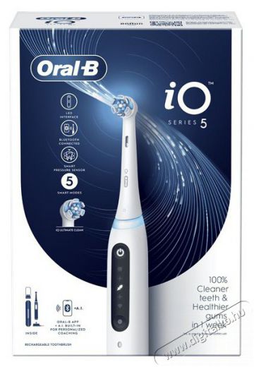 Az iO 5 elektromos fogkefe az Oral-B legkiválóbb technológiáját alkalmazza, amely ötvözi a fogászati eszközök ihlette kerek fogkefefejet és a gyengéd mikrovibrációt kibocsájtó sörtéket, a professzionális tisztaság érzéséért otthonában is.