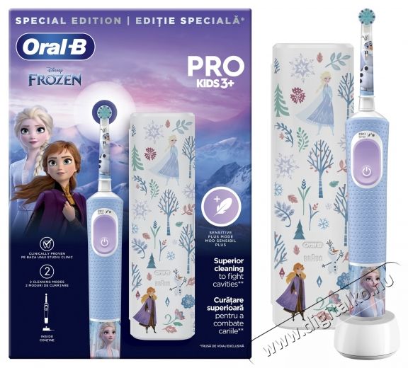 2 TISZTÍTÁSI MÓDAz Oral-B Pro Kids elektromos fogkefe, amelyet fogorvosok ajánlanak 3 éves kor felett, finom és hatékony tisztítást kínál. 2 fogmosási móddal : Napi fogmosás és az egyedülálló Sensitive Plus mód a hihetetlenül finom élményért.