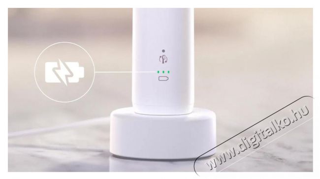 A csomag tartalmaz egy szónikus fogkefét, a Philips Sonicare Optimal White kefefejet és a töltőállványt. Egy teljes töltéssel akár 3 hétig bírja rendszeres fogmosás mellett. A csomag nem tartalmazza az aljzatadaptert.