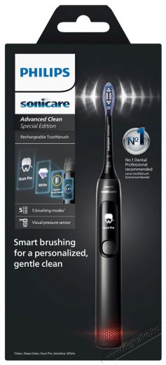 A remek Philips Sonicare szónikus elektromos fogkefe tökéletesen tiszta fogakat kínál az otthon kényelmében. A fogkefefej finom sörtéivel precízen megtisztítja a nehezen elérhető helyeket, méghozzá hatékonyabban, mint egy hagyományos kézi fogkefe. A remek Philips Sonicare elemes fogkefe 5 fogtisztítási módot kapott. Az interaktív kijelzőn az összes fontos információt és figyelmeztetést láthatod. A kiváló Philips Sonicare elektromos fogkefe odafigyel helyetted a fogmosás optimális idejére, a nyomásérzékelő pedig figyelmeztet, ha túl nagy nyomást gyakorolsz a fogkefére.