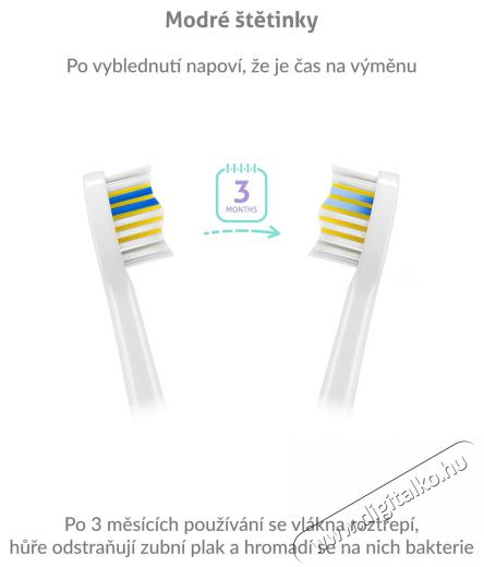 A fejek kék sörtékkel rendelkeznek, amelyek a kopás mértékét jelzik. Így könnyű megállapítani, hogy mikor van itt az ideje a TrueLife SonicBrush Compact Duo kefefej cseréjének.