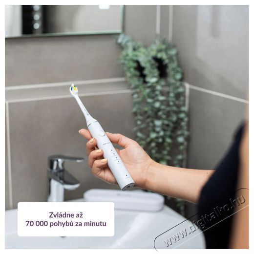 A kefefej percenként 70 000 mozgással oszcillál. A gyengéd rezgések nem adnak esélyt a lepedéknek, pigmentfoltoknak vagy baktériumoknak. A SonicTrue® szónikus technológia kíméletesebb a fogzománchoz, mint a forgó kefék. A fogkefe a fogkrémet a vízzel együtt fel is kavarja, és a fogközökbe fújja, ezzel segítve azok tisztítását.