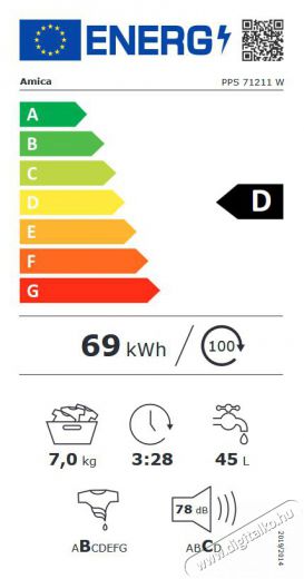 • Energiafogyasztás (mosás) 0.69 kWh/ciklus