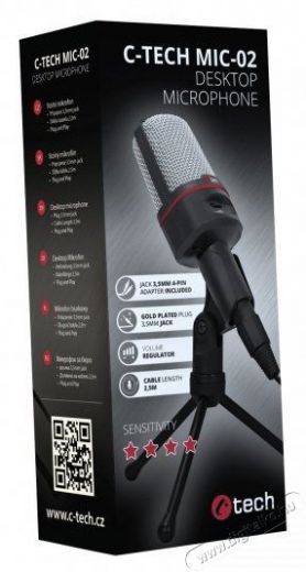 C-TECH MIC-02Szeretnél úgy kinézni mint a profik? A C-TECH vállalat MIC-02 mikrofonjával megoldható ez és nem is kell érte túl sokat fizetni. Nem csak megjelenésével, hanem hangzásával is a profi szint felé kacsintgat, ugyanis frekvenciatartománya 50 Hz-től 16 KHz-ig nyúlik. Speciális, irányított kialakításának köszönhetően elnyomja a nemkívánatos, hátulról érkező hangokat, hangokat. Került rá hasznos ON/OFF kapcsoló illetve hangerőszabályzó, a csomagban pedig mutatós és nem utolsósorban stabil állványt is találunk, amivel a kíván pozícióba igazítható. Vezetéke jó hosszú, 2,5 méteres, végére 3,5 mm-es, aranyozott jack csatlakozó került. Akkor sem leszünk gondban, ha összevont hang ki-bemenettel kell használunk, ugyanis jár hozzá 3pin-4pin átalakító.