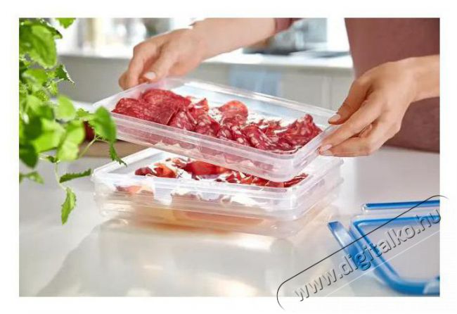 Tárolóedény - anyag: műanyag, kapacitás: 1,2 l, szilikon tömítés, mikrohullámú sütőben, mosogatógépben, fagyasztóban használható, fedél gumitömítéssel, 100% szivárgásmentes, 100% higiénikus, BPA-mentes, méretek: 22,5×16,3×5,8 cm, 1 darab.