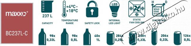 | Hűtőszekrény teljes hasznos térfogata | 237 l |