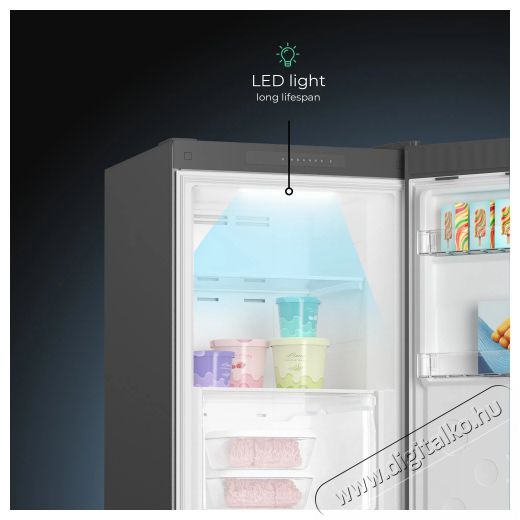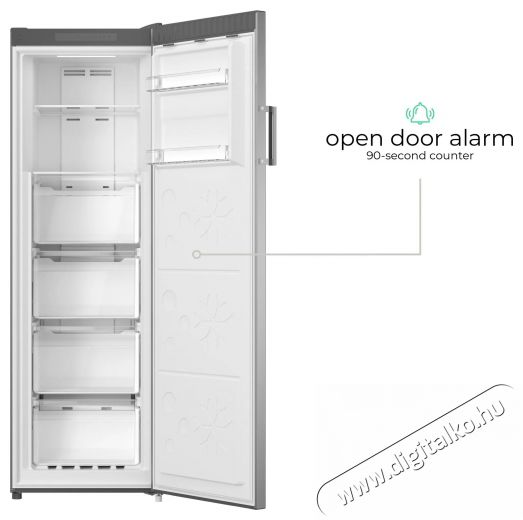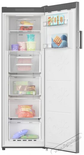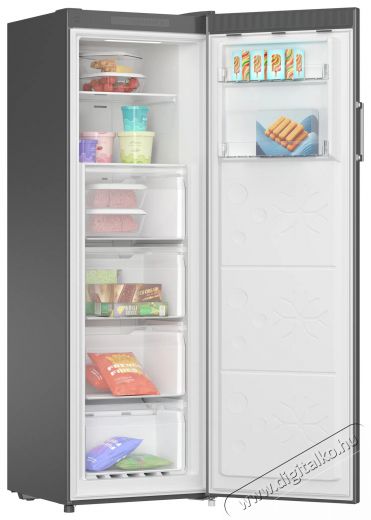 A SIGURO UF-D241S Ideal fiókos fagyasztó összesen 206 liter hasznos térfogatot kínál, amelyet négy kihúzható fiók és két nyitott, edzett üvegből készült polc oszt meg. Az ajtóban két rekesz is található a kisebb élelmiszerek tárolására. A dobozok átlátszó kialakításának köszönhetően gyorsan és egyszerűen láthatod, hogy mit tárolsz bennük. A fagyasztó ajtaja teljesen kinyitható, így a fiókok kényelmesen kihúzhatók, biztosítva a tökéletes hozzáférést az elhelyezett ételekhez. Az energiahatékonyságot és a jobb áttekinthetőséget az ajtó felső részén található LED-világítás biztosítja.