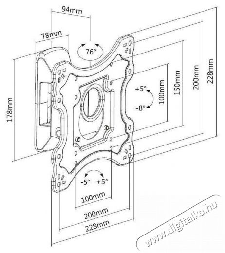 | VESA kompatibilitás | 100x100, 100x150, 100x200, 200x200 |