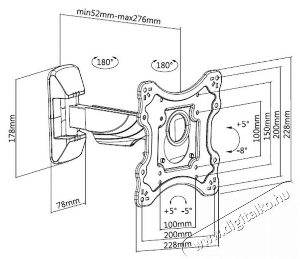 | VESA kompatibilitás | 100x100, 100x150, 100x200, 200x200 |