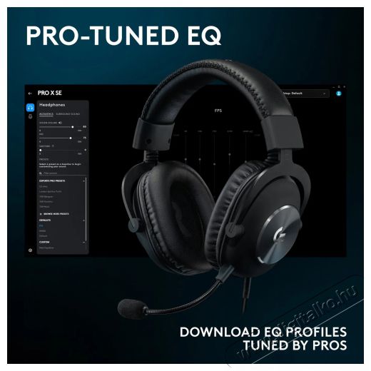 Logitech G PRO X SE Wired Gaming Headset, fekete - minőségi gamer fejhallgató Blue Vo!ce technológiávalA Logitech G PRO X SE vezetékes fejhallgatót elsősorban PC- és konzoljátékosok számára tervezték. A tartós alumínium- és acélszerkezet, valamint a memóriahabos fülpárnák még hosszabb játék közben is biztosítják a kényelmet. Kivehető, Blue Vo!ce technológiát használó mikrofon javítja a hangkommunikáció minőségét, az 50 mm-es hangátalakítók pedig hozzájárulnak a tiszta és dinamikus hangzáshoz. A térhatású hangzás legújabb verziója megkönnyíti a közeli és távoli hangforrások felkutatását. A zárt kialakítás csökkenti a hangszivárgást, és segít maximalizálni a koncentrációt játék közben. A fejhallgató támogatja az equalizer (EQ) és más paraméterek beállítását a G HUB szoftver segítségével. A frekvenciatartomány 20-20 000 Hz, az érzékenység 91,7 dB/mW, az impedancia 32 ohm. A csomag tartalmaz egy levehető 2 méteres kábelt.